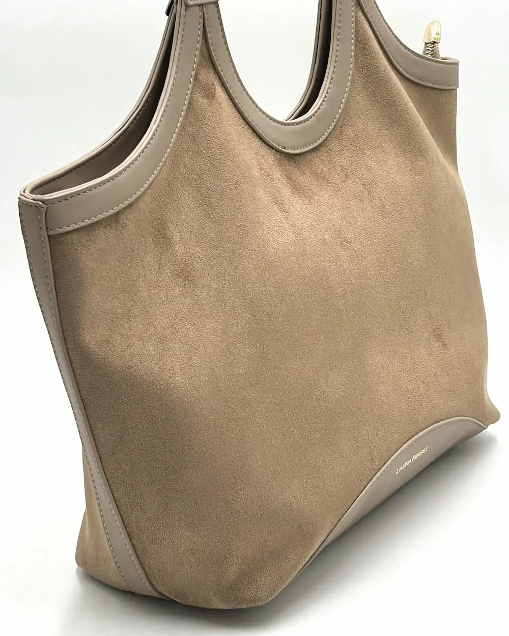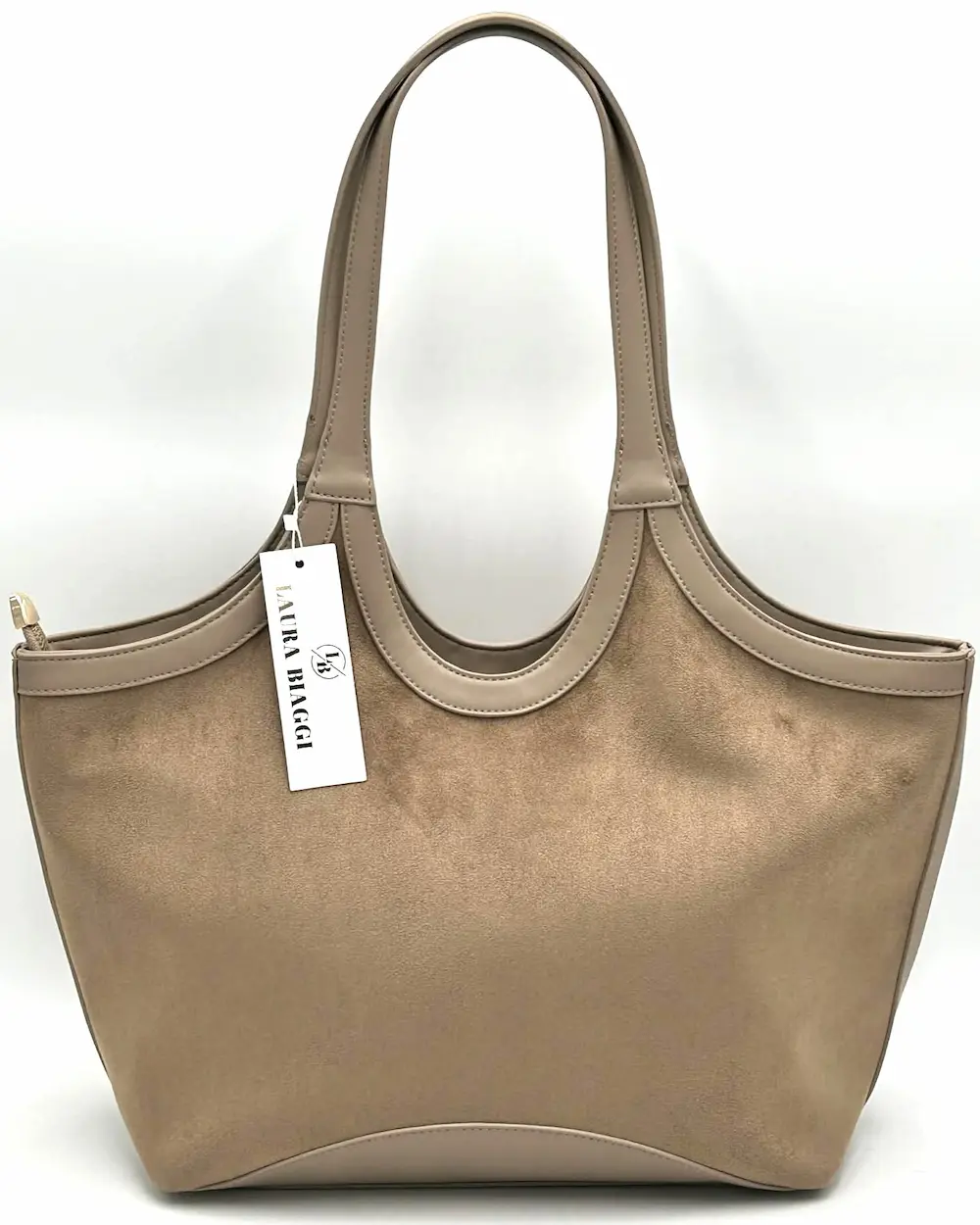 Torebka shopper Laura Biaggi taupe – elegancja w zamszowym stylu