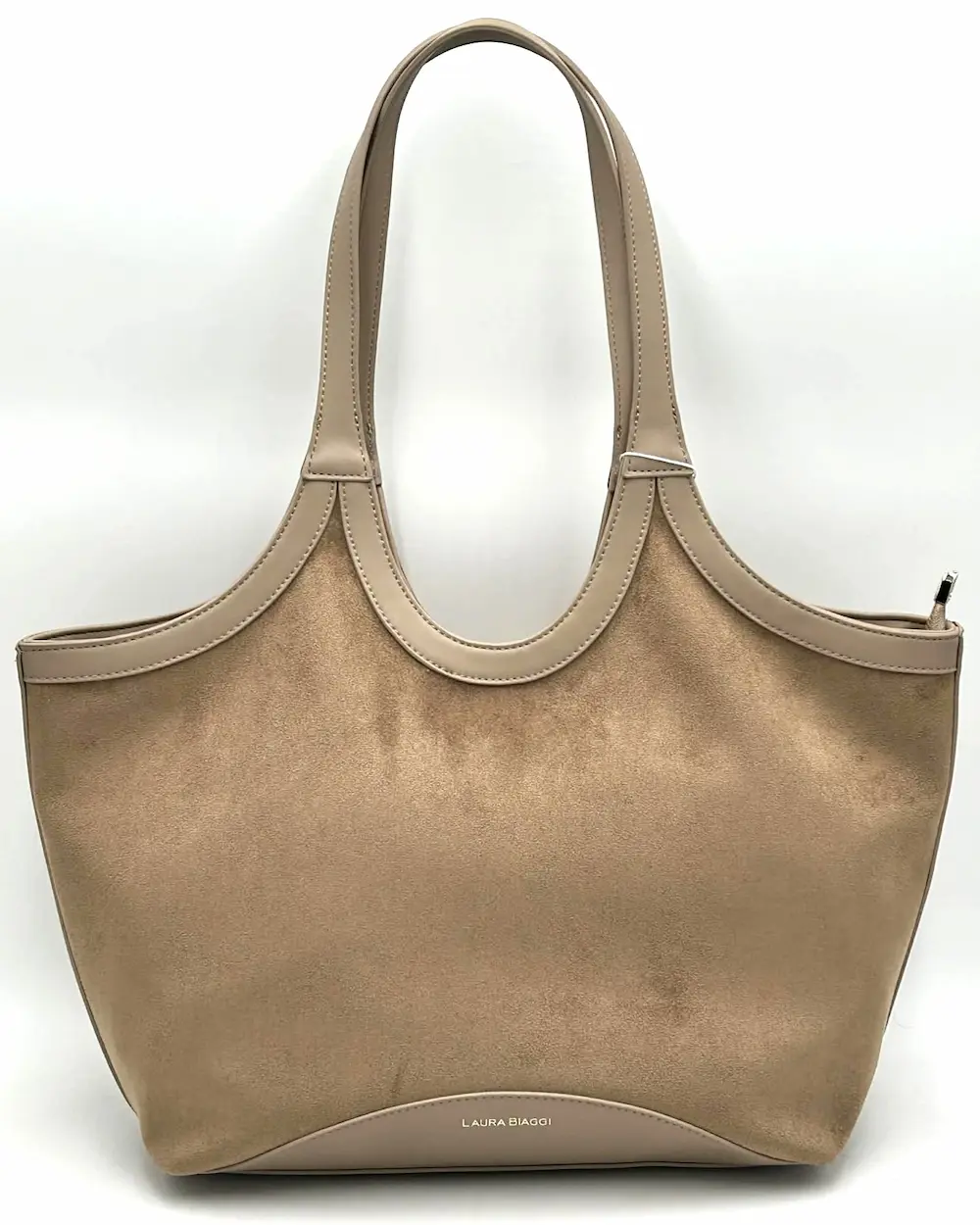 Laura Biaggi torebka shopper taupe na ramię z ekozamszu