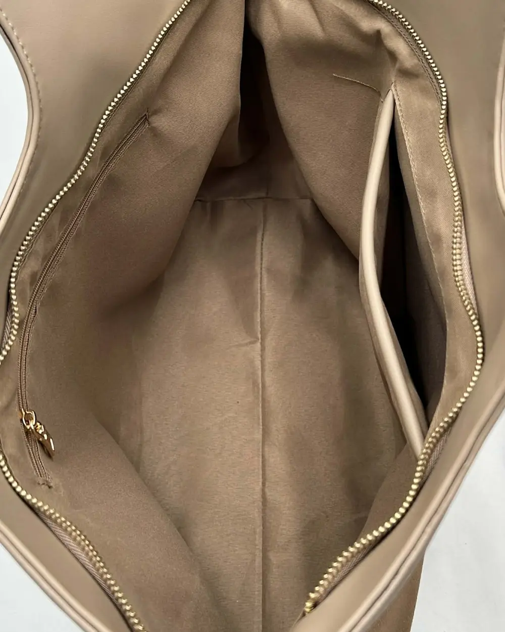 Miękkie wykończenie z ekozamszu nadaje torebce luksusowego charakteru, a dodatki z ekoskóry pięknie podkreślają jej nowoczesną linię.