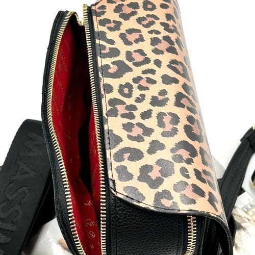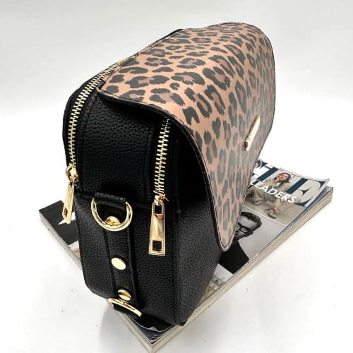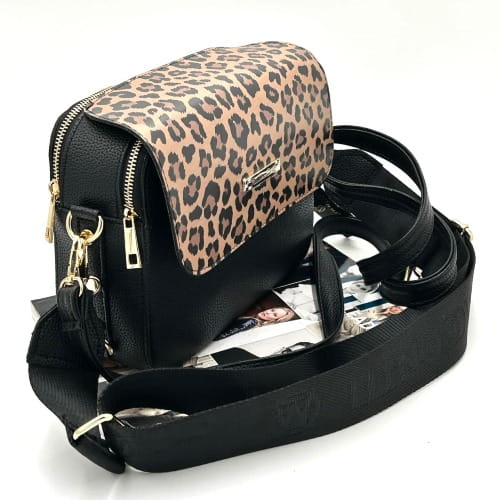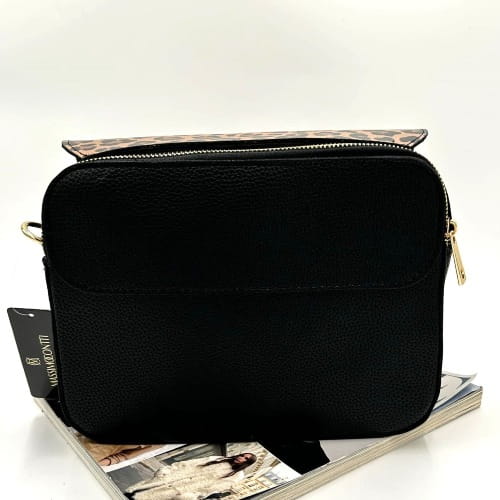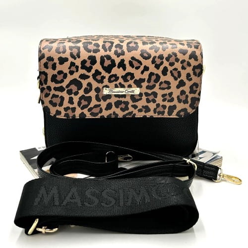 Torebka listonoszka Massimo Contti to udane połączenie czerni z beżowo-czarną klapką w klasyczną panterkę, która nadaje modelowi modowego charakteru. Idealna dla kobiet, które chcą dodać stylizacji nutę drapieżności, ale w eleganckim wydaniu.
