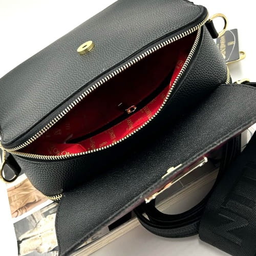 Torebka ma średnią wielkość i jest dwukomorowa, dzięki czemu świetnie sprawdzi się zarówno na co dzień, jak i podczas wieczornych wyjść. Mieści dokumenty formatu A5. Obie komory zamykane są na zamek błyskawiczny, a całość dodatkowo zabezpiecza klapka z ozdobną blaszką z logo Massimo Contti.