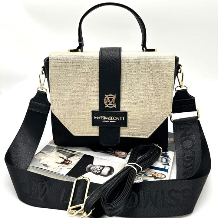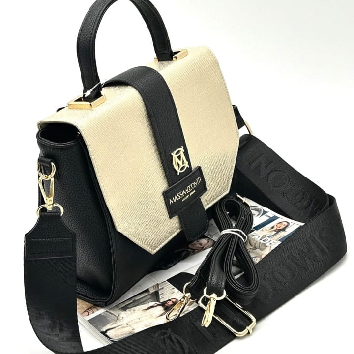 Biżuteryjne logo Massimo Contti i złote okucia