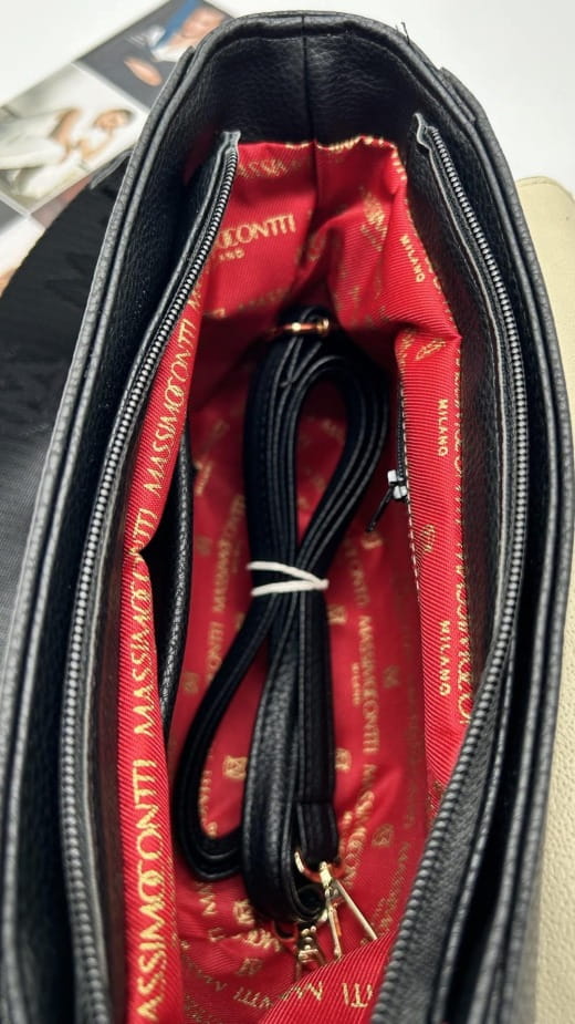 Do torebki dołączono dwa paski: szeroki, tkany pasek z logo Massimo Contti oraz klasyczny, skórzany pasek. Oba posiadają regulację długości, dzięki czemu łatwo dopasujesz torebkę do swoich potrzeb.