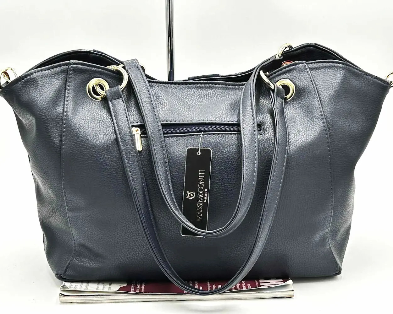 Granatowa shopperka od renomowanej polskiej marki Massimo Contti to idealny wybór dla kobiet ceniących elegancję, wygodę i ponadczasowy styl. Wykonana z wysokiej jakości skóry ekologicznej z dodatkami miękkiego eko-zamszu, prezentuje się wyjątkowo szykownie i sprawdzi się w każdej sytuacji – od pracy po spotkania towarzyskie.