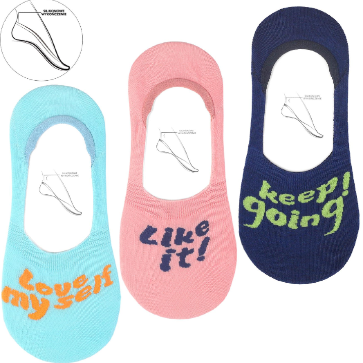Moraj – Damskie stopki bawełniane z napisami (3-pak, 38–41)