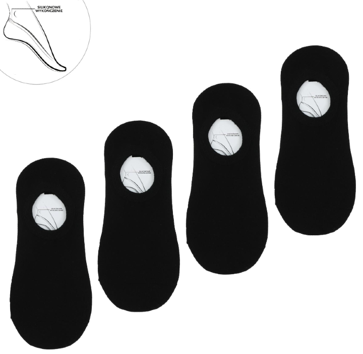 Stopki uszyte z przyjemnego dla skóry miękkiego materiału, wykończone elastycznym nieuciskającym ściągaczem. Stopki posiadają silikonową zapiętkę dzięki czemu zapobiegają ich ześlizgiwaniu się. Dyskretne idealne do różnego rodzaju obuwia.