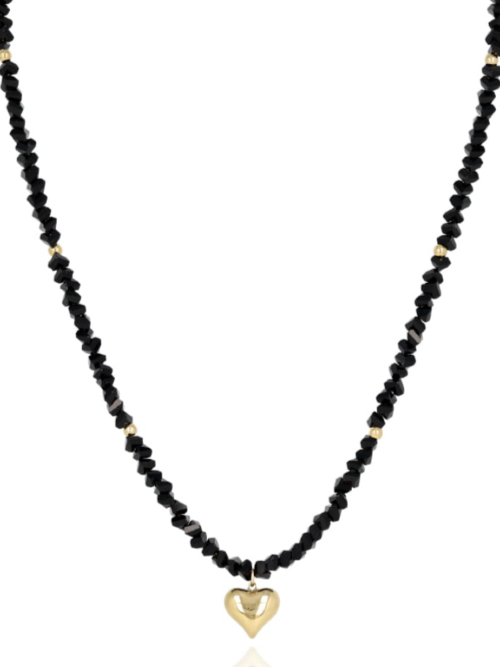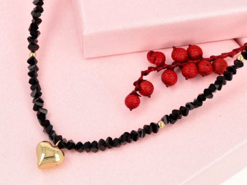 Ten piękny naszyjnik to połączenie klasycznej formy z nowoczesnym akcentem. Wykonany z wysokiej jakości stali szlachetnej 316L, zachwyca subtelnym blaskiem czarnych szklanych kryształków i delikatną zawieszką w kształcie serca. Biżuteria nie tylko dodaje uroku każdej stylizacji, ale także zapewnia komfort noszenia dzięki właściwościom antyalergicznym.