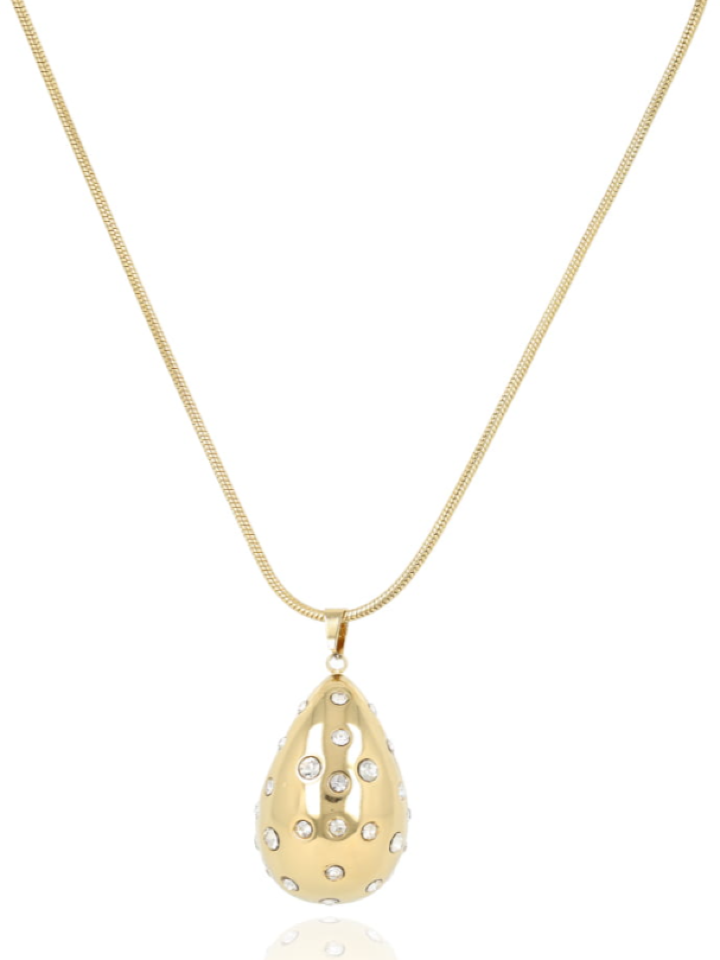 Naszyjnik złoty z zawieszką kroplą i cyrkoniami – stal chirurgiczna