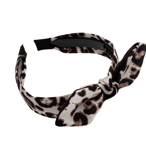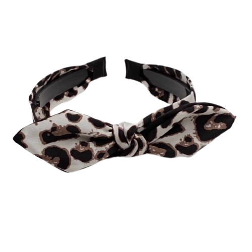 Opaska materiałowa z kokardą – print w brązowe łatki