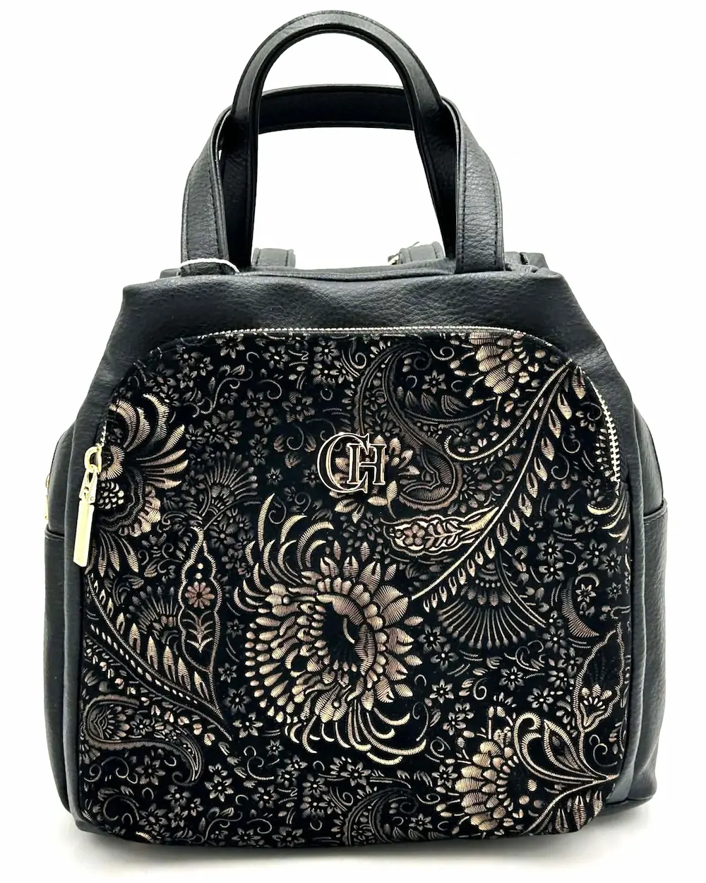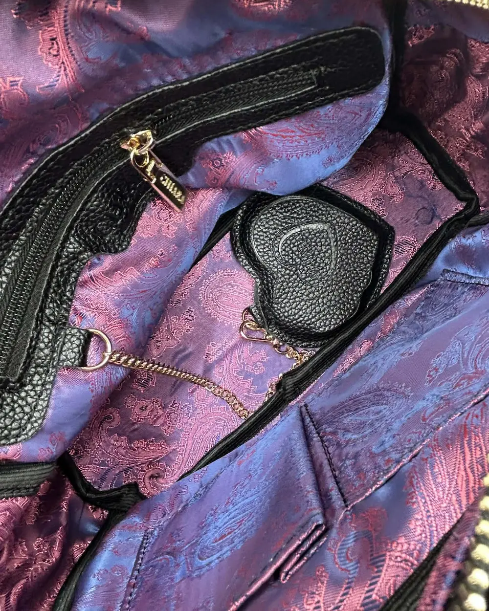 Czarny kolor nadaje plecakowi ponadczasowego charakteru, a dekoracyjna kieszeń z subtelnym wzorem dodaje mu elegancji i oryginalności. Złote elementy pięknie podkreślają całość, tworząc efekt modnego dodatku w stylu premium.