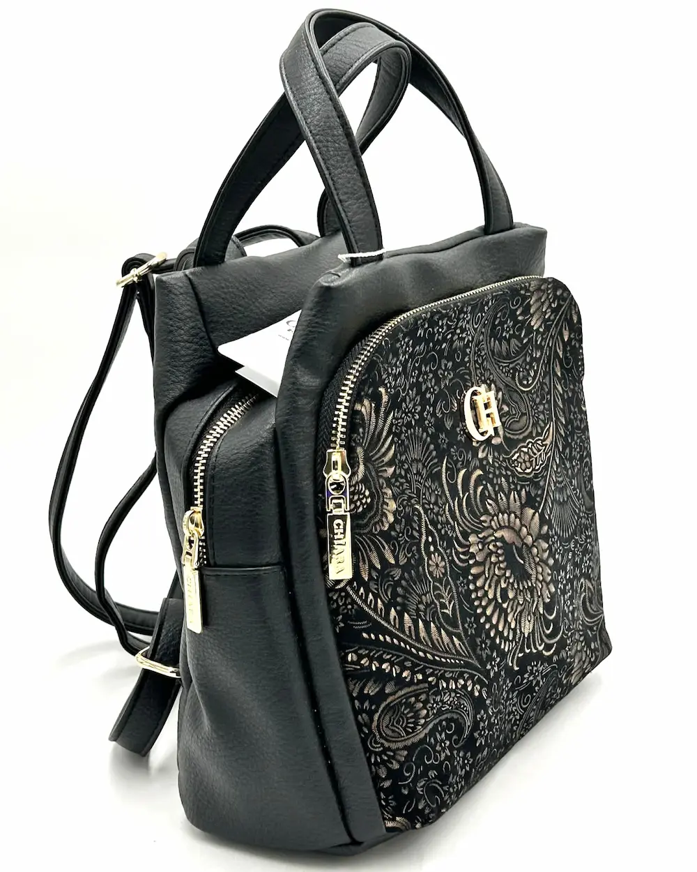 Ten wyjątkowy plecak marki Chiara to propozycja dla kobiet, które szukają praktycznego dodatku w eleganckim wydaniu. Klasyczna czerń została przełamana efektowną, ozdobną kieszenią z przodu, która przyciąga wzrok i nadaje całości unikalnego charakteru.