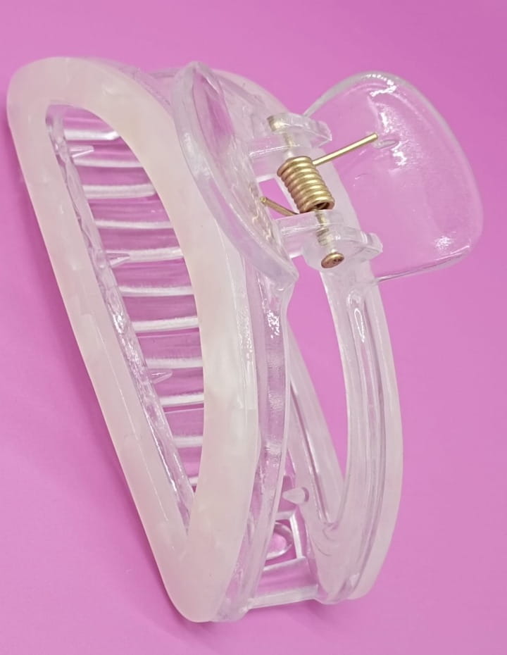 Delikatna, a jednocześnie solidna – przezroczysta spinka klamra do włosów z białym połyskiem to idealne rozwiązanie dla kobiet ceniących prostotę z nutą elegancji. Spinka wykonana z trwałego materiału, świetnie sprawdza się przy upinaniu długich, gęstych włosów.