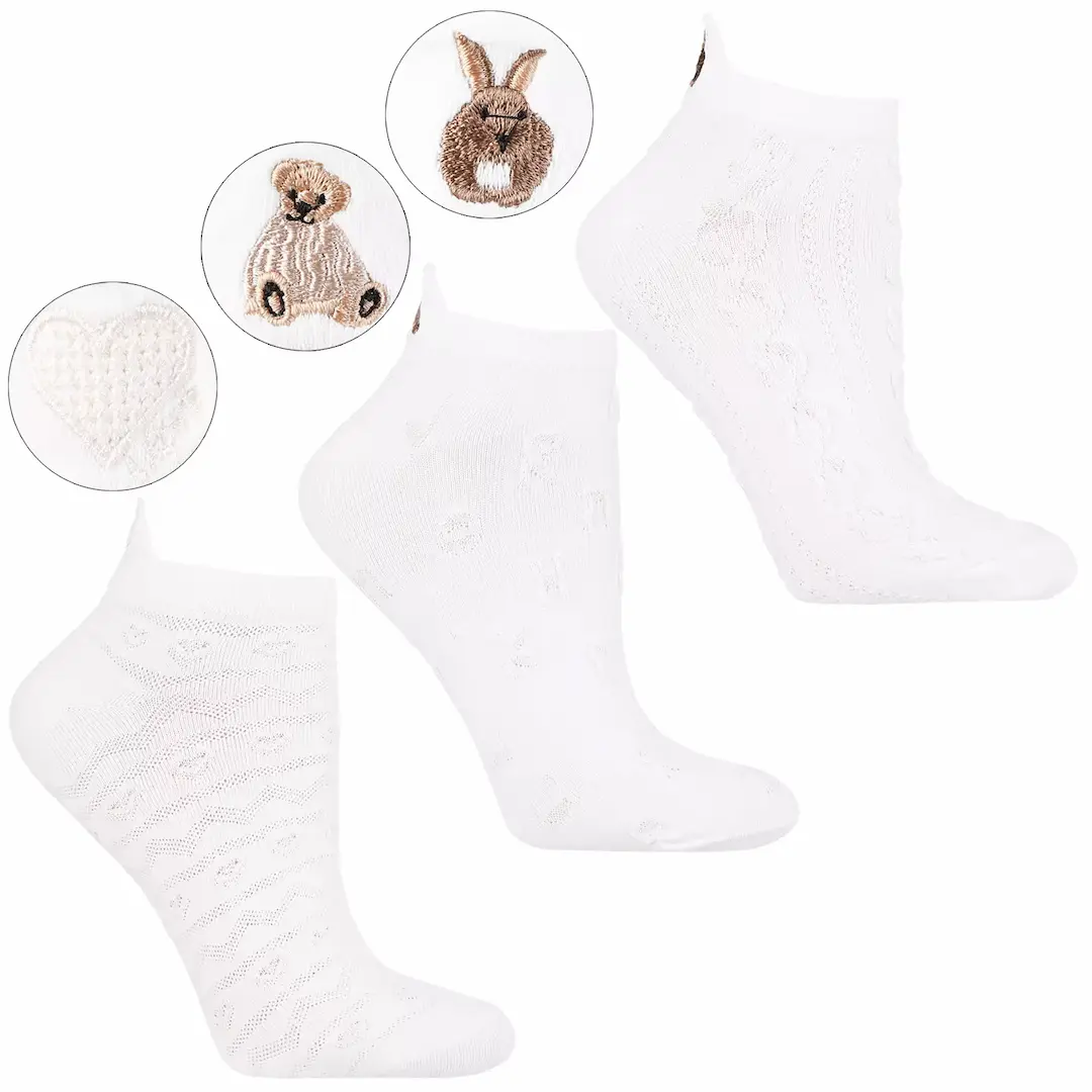 Stopki damskie Moraj w klasycznym białym kolorze to połączenie wygody, jakości i dziewczęcego stylu. Każda para wyróżnia się delikatnym haftem – serduszkiem, misiem lub króliczkiem – który nadaje im wyjątkowego charakteru.