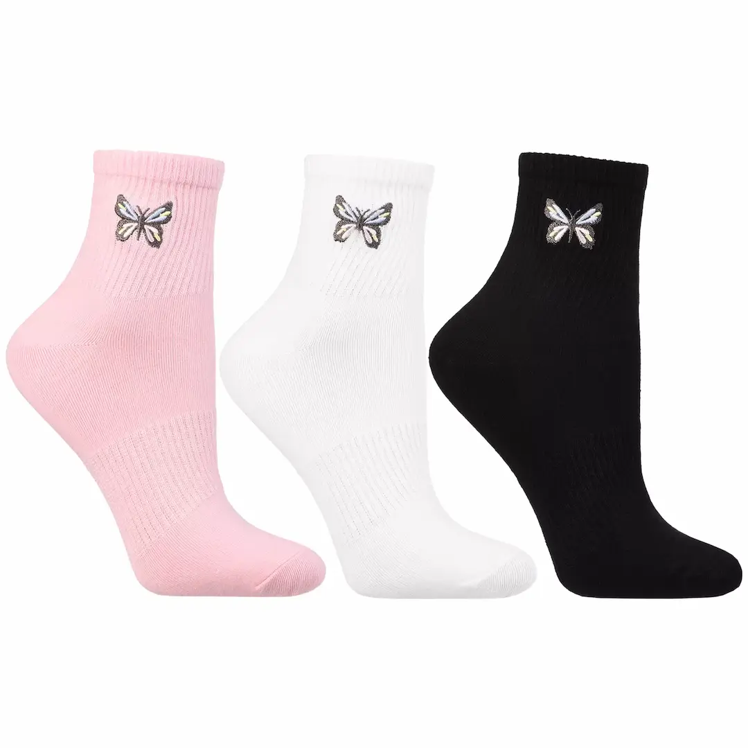 Skarpetki damskie Moraj 3/4 z haftowanym motylkiem – zestaw 3 par (38–41)