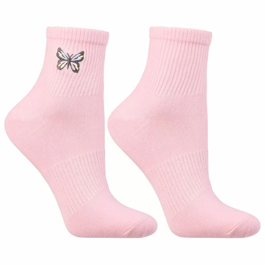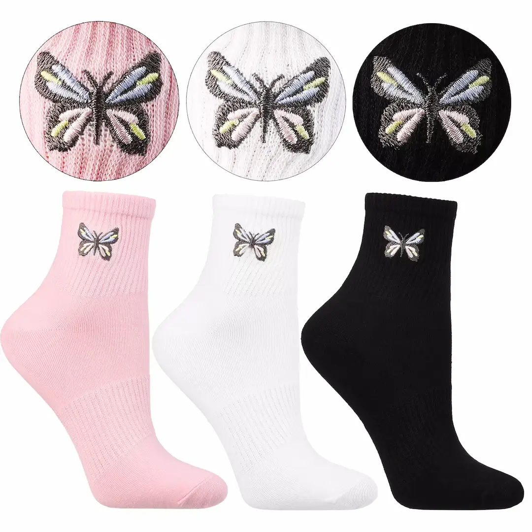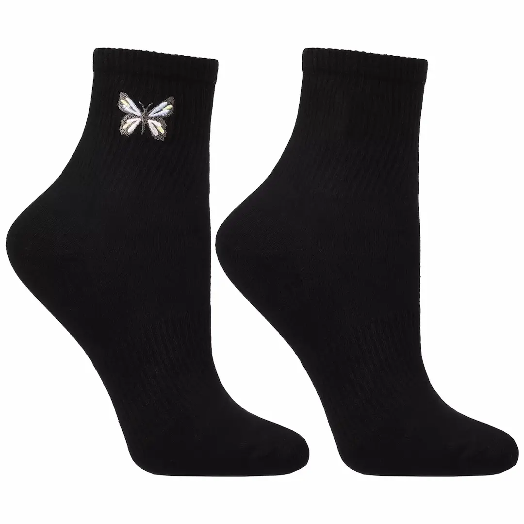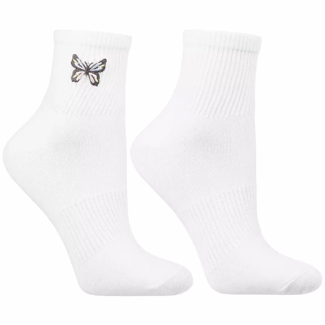 gładkie skarpetki z haftowanym motylkiem