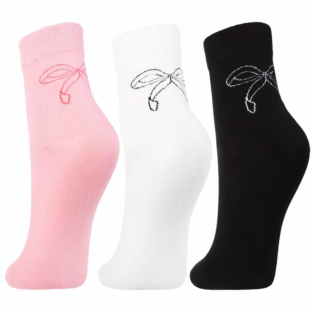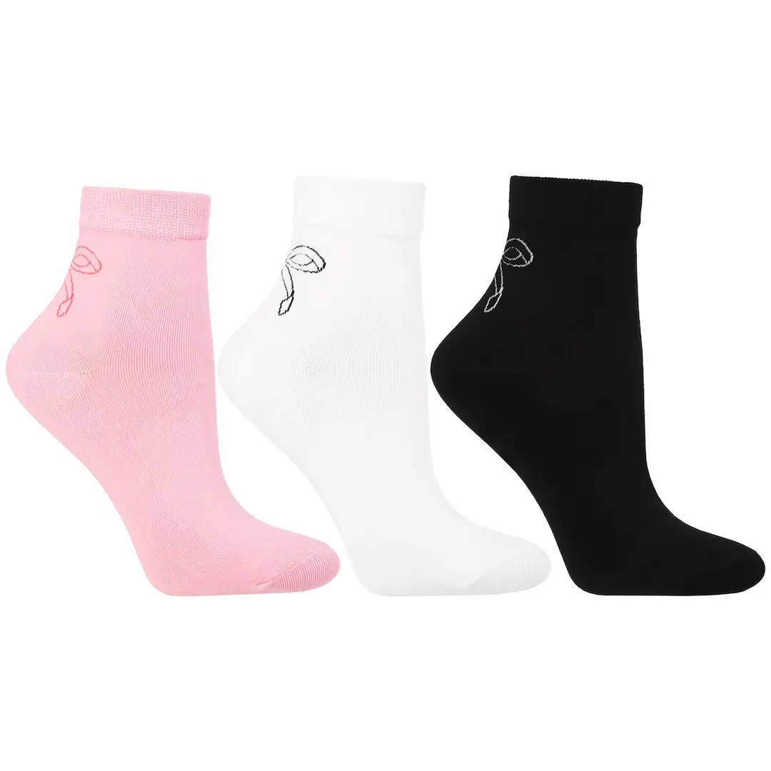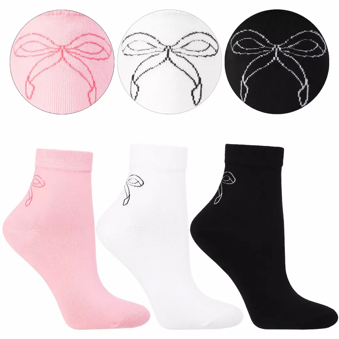 Skarpetki damskie Moraj z haftowaną kokardką – 3-pak 3/4 (białe, czarne, różowe) 38–41