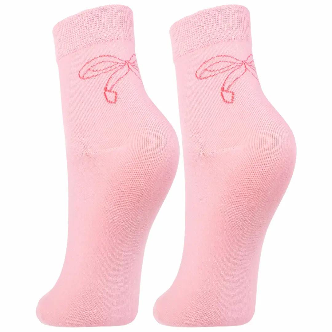różowe skarpetki damskie z kokardką.