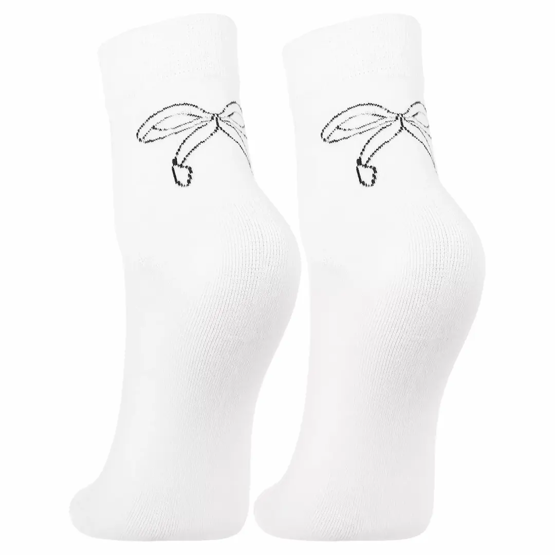 Damskie skarpetki Moraj zachwycają minimalistycznym designem i delikatnym haftem kokardki, który dodaje im dziewczęcego uroku. Gładka struktura i staranne wykończenie sprawiają, że skarpetki pasują zarówno do casualowych, jak i bardziej kobiecych stylizacji.