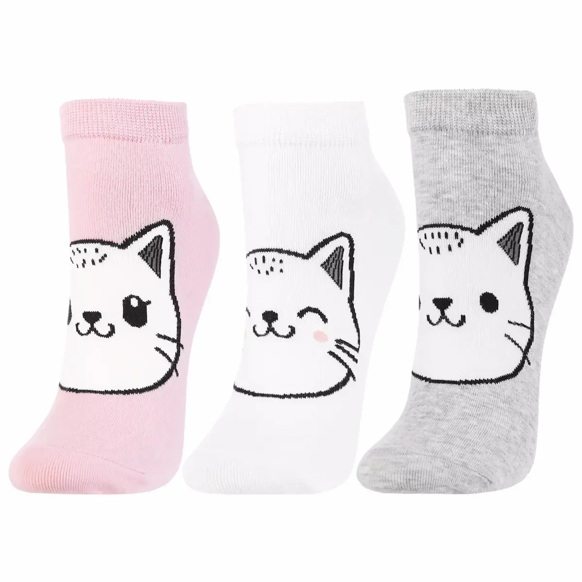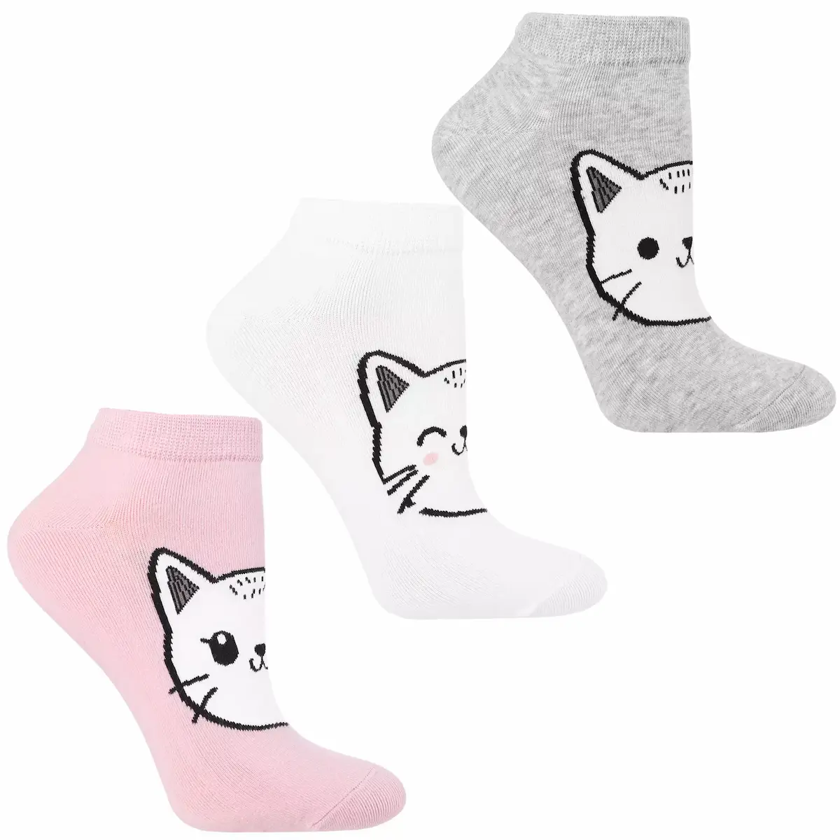 Dodaj odrobinę uroku do swojej garderoby dzięki 3-pakowi damskich stopek Moraj z motywem kotka.