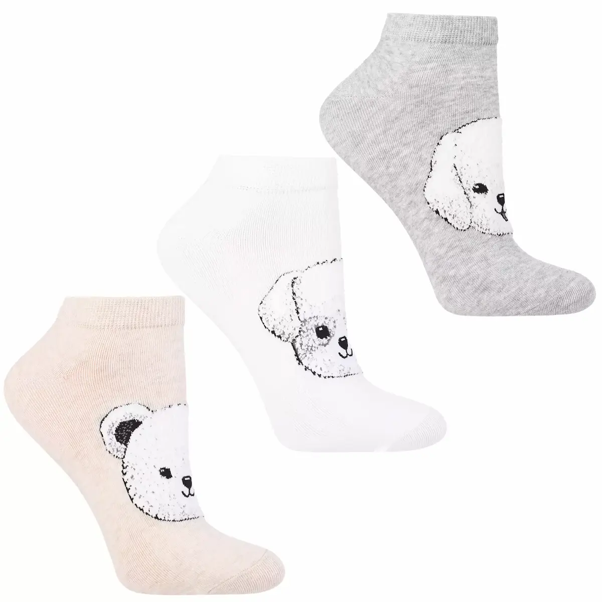 Bawełniane skarpety stopki damskie Moraj z motywem pieska – zestaw 3 par - rozmiar 38 - 41