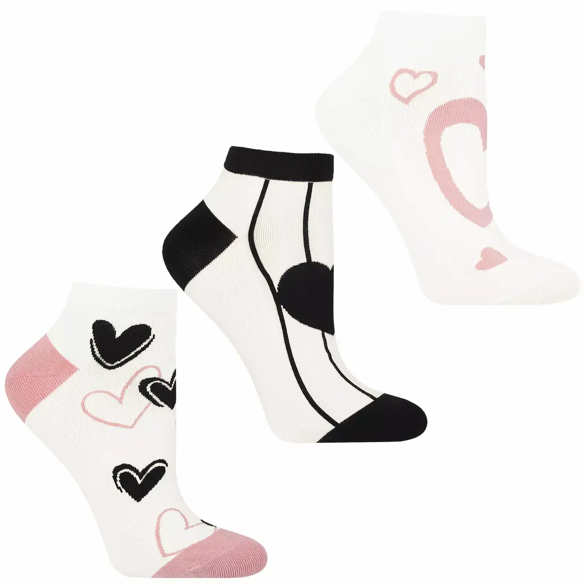 Bawełniane skarpetki stopki damskie Moraj z serduszkami – zestaw 3 par, rozmiar 38 - 41