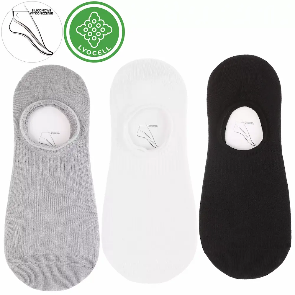 Skarpetki damskie stopki niskie Lyocell 38–41 | 3-pak białe, czarne, szare