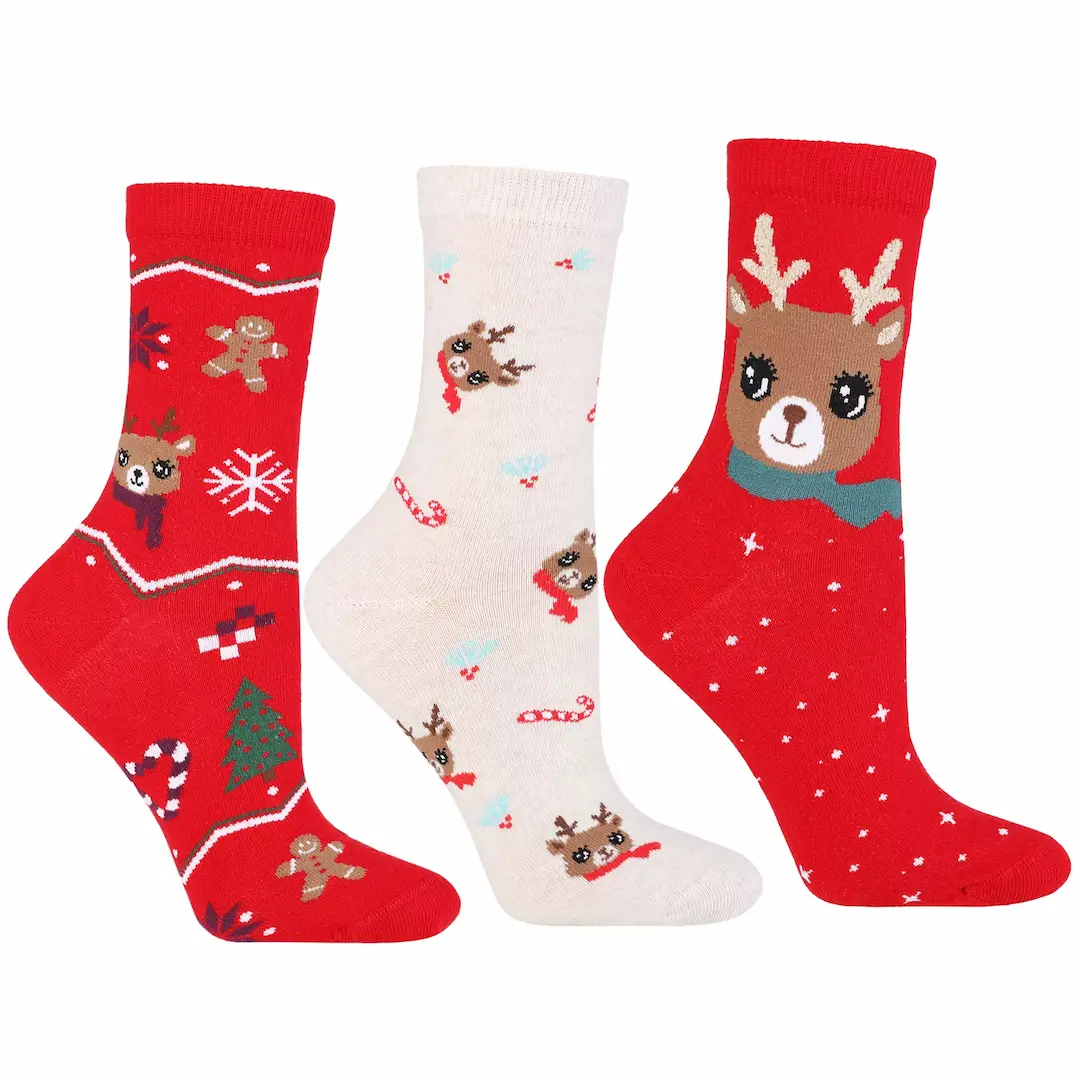 Świąteczne skarpetki damskie 3-pak Moraj z reniferami i gwiazdkami 38–41