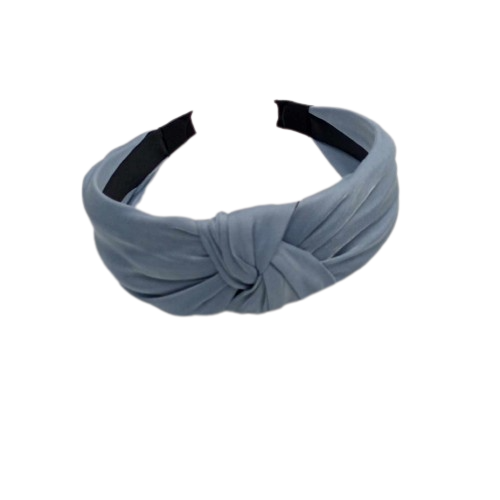 Szeroka opaska do włosów z węzłem – jasnoniebieska, materiałowa