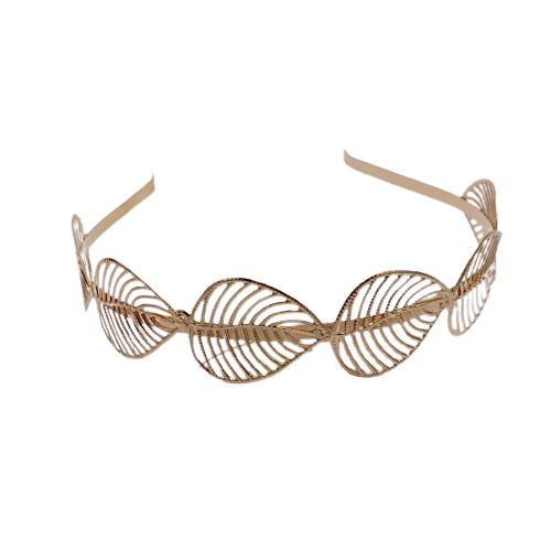 Złota opaska do włosów – metalowa z ażurowymi listkami
