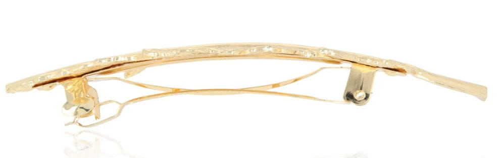 Złota spinka automatyczna do włosów z ozdobnym piórkiem – stylowa metalowa