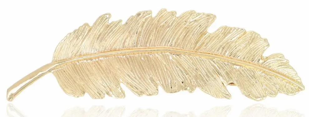 Złota spinka do włosów z piórkiem – subtelny akcent w Twojej fryzurze