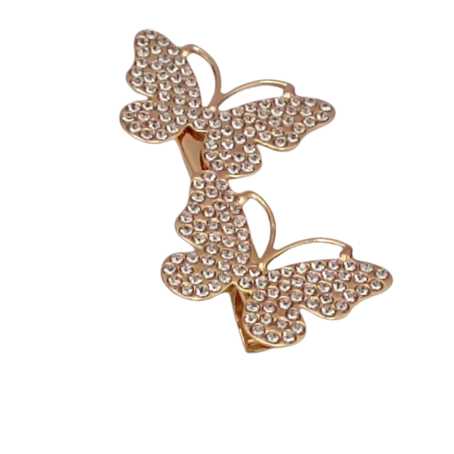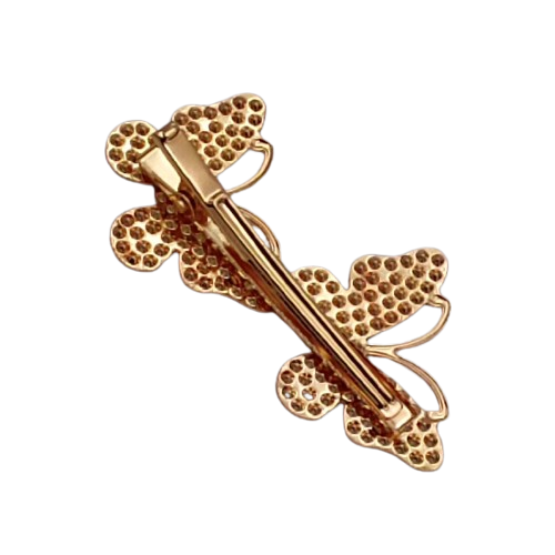 Złota spinka do włosów z dwoma motylkami i kryształkami – kobiecy akcent w Twojej fryzurze