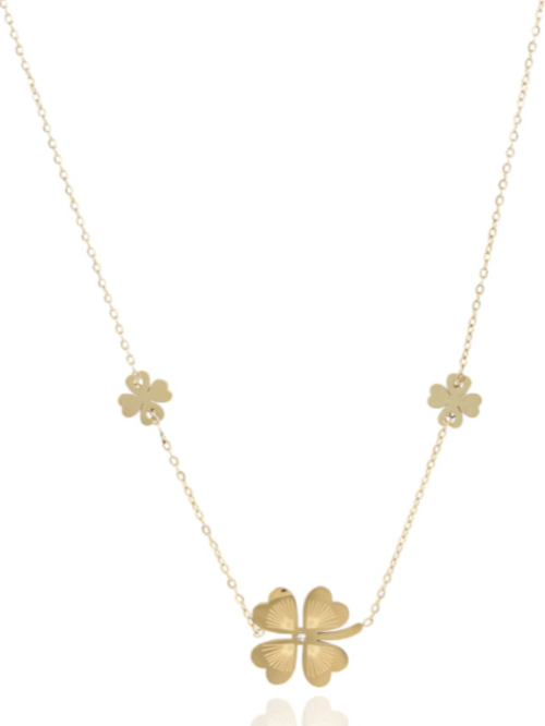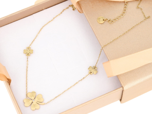 Złoty naszyjnik z trzema koniczynkami ze stali szlachetnej – kolekcja Vella